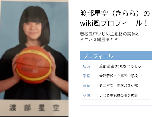 渡部星空(きらら)のwiki風プロフ!若松五中いじめ主犯格の実体とミニバス経歴まとめ – エンタメネクサス